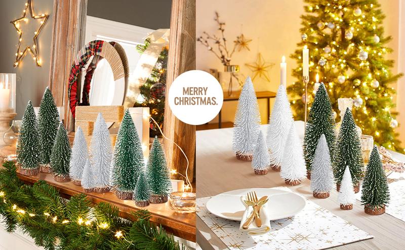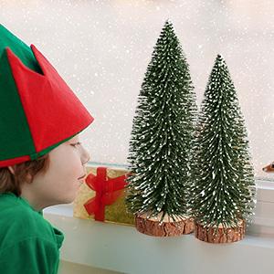 9Pcs Mini Christmas Trees Christmas Decor Artificial Christmas Decorations with 4 Sizes, Christmas Tree Bottle Brush Trees Christmas Table Decorations (Green Silver)
