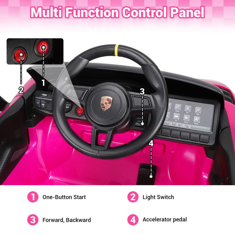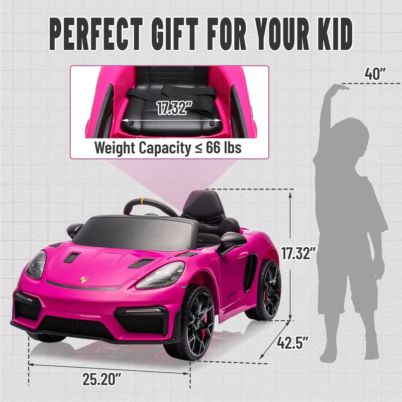 - 【Officially Licensed & Authentic Design】: The officially licensed Porsche 718 Spyder Ride-On series features an iconic Porsche logo and sleek design, complete with a steering wheel, pedals, mirrors, windshield, and simulated wipers, offering children an authentic driving experience.